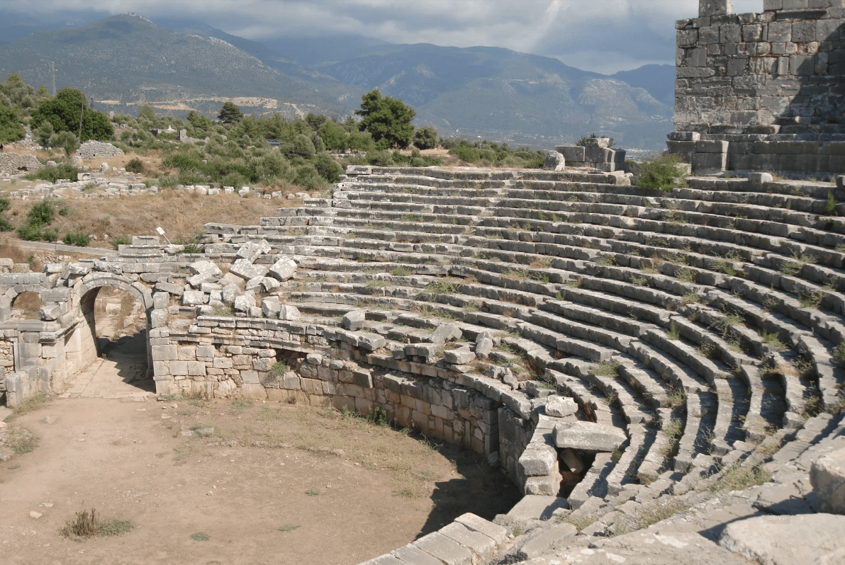 Roma dönemine ait tiyatro, Likya Akropolü’nün kuzeyindedir ve şehrin en iyi korunmuş yapılarındandır.